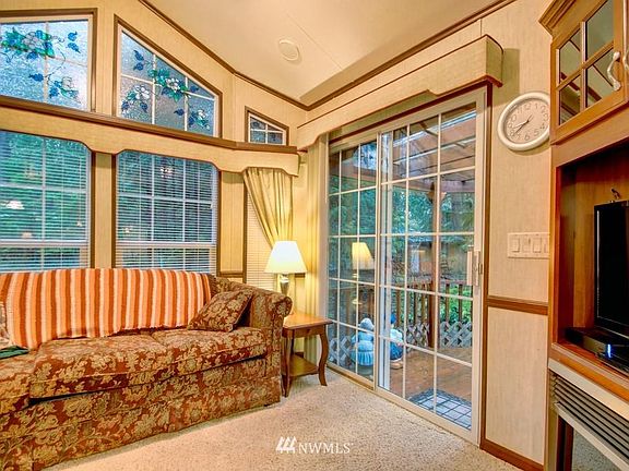 Make yourself at home on this cozy and inviting lot! With a massive amount of greenspace at the back, there is a calming feeling of privacy here where you can commune with nature while sitting on the large covered deck. Inside, this 2006 park model boasts a large loft with a second bedroom, high ceilings, and plenty of space to spread out. There is plenty of storage inside, and more space in the addition, which is currently being used as a shop. If more sleeping space is needed, the property also features an insulated bunkhouse that has electricity. The Glen has all the amenities you could want, including 2 pools, hot tub, tennis court, library, laundry mat, 2 clubhouse, 24 hr security, gated entry, & play areas.