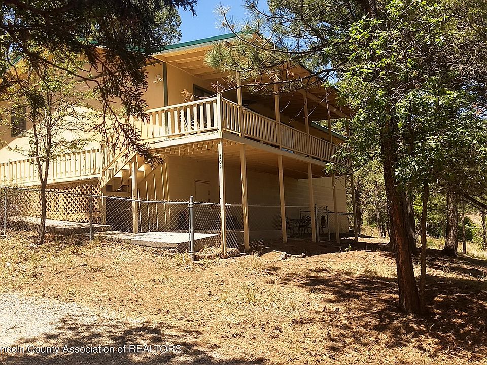 Sweet cabin in the woods! Home has been well cared for and you can reap the benefits. Metal Roof; Great Room; wonderful covered deck under the towering Pines with an additional patio under the deck; cement walkways lead to the under house workshop and mechanics area; fenced yard w/ Queen Anne Lace Vines on the fencing; furnished; awesome utility room and master closet; back yard patio; garden shed to protect one's grill. This property would be a wonderful vacation or permanent home as well as a terrific rental property!