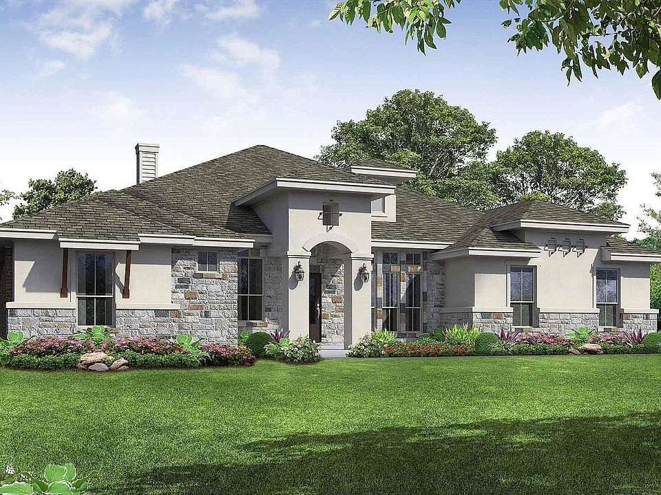 MLS# 9130612 - Built by Empire Homes - Oct 2025 completion! ~ The Braunig is a 4 bedroom, 3 bath, single story home with a 3 car side entry garage. It features a spacious open concept floor plan that includes a Rotunda at the entry, formal dining room, study and playroom. A 10 foot fireplace in the family room is standard in this plan along with a large primary suite with walk-in shower, dual vanities, dual linen closets and spacious walk-in closet with built-in shelving. Large oversize lot with a beautiful view.