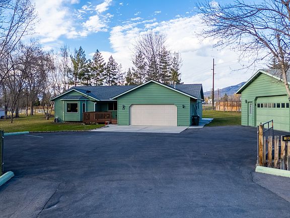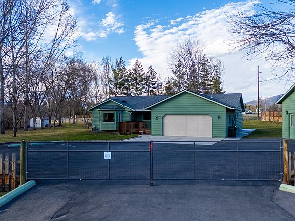 Privately set in the scenic Bitterroot Valley, this 1,698 sq. ft. home sits on a fully fenced and gated 1+ acre lot, offering stunning views of the Bitterroot and Sapphire Mountain ranges. Conveniently located just two minutes from river access, this property combines privacy, functionality, and modern comforts. Be sure to watch the fly through and check out the 3D tour in links below. Inside, the open floor plan features a vaulted ceiling living room, a breakfast bar kitchen, and a spacious dining area. The kitchen is equipped with stainless steel appliances, including a 5-burner gas stove, refrigerator, dishwasher, and microwave. The primary suite offers an en-suite bath, while main-floor utilities provide ease with an electric front-loading washer and dryer, garage access, and crawl space storage. A full blacktop and concrete driveway leads to an attached insulated two-car garage, complete with an emergency generator hookup, utility sink, counter space, and workbench. The detached 26’x40’ oversized heated garage includes a bathroom with shower and a back office, making it perfect for additional storage, a workspace, or potential guest quarters. Additional features include: Recently remodeled with new paint, Generator hook ups already installed, Two small storage buildings (7’6”x6’ and 10’x13’) , RV hookup, Private septic system, Water & irrigation well with underground sprinklers, John Deere mower & Cyclone rake included, New roof and gutters (2024) With beautiful mountain views and easy access to local amenities, this gorgeous property is a must-see. Schedule your showing today! It is the responsibility of the buyers and their agents to verify all info regarding this property. Info is provided by outside sources and deemed reliable but it is not guaranteed by listing agent or listing office.