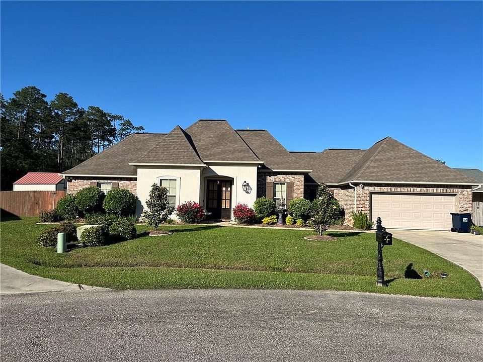 Non-listed sold. Entered for comp. purposes. Beautiful home in great location! French country design! Immaculately maintained! Hand-scraped hardwood and ceramic tiled floors in living areas and master bdrm. Carpet floors in bedrooms 2, 3 & 4. Crown molding. Granite countertops in kitchen and both bathrooms. Ceramic tile backsplash, breakfast bar, and pendant lighting, in kitchen. Stainless appliances, 5 burner gas stove. Gas fireplace. 9-11 ft. ceilings. Corner soaking tub, separate shower, his and her vanities, and his & her closets, in master bathroom. Trey ceiling in master bdrm. Window coverings include blinds and roman shades. 1/4 acre lot, located in a cul-de-sac. Fenced yard. Landscaped with front and rear gardens, covered rear patio, storage shed. 2 car garage. Approximate measurements.