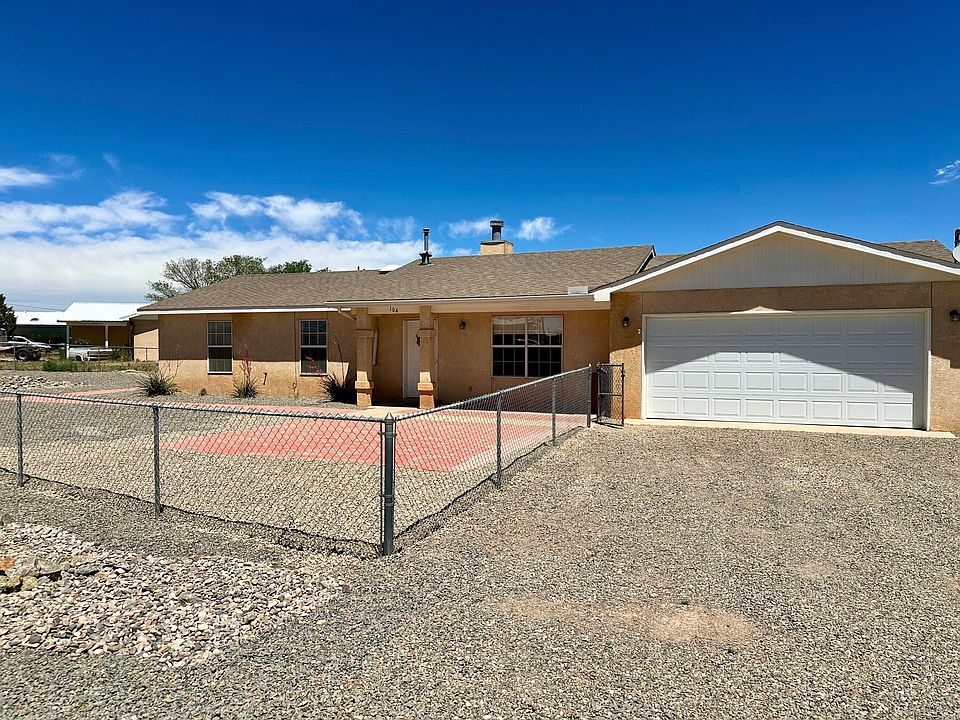 Are you ready to live in a quiet country setting only minutes from Albuquerque? This is the home. Great curb appeal and 3 Bedrooms + Office + Sunroom and all on 1 acre fenced lot! What more can you ask for? Fireplace in Living space, high vaulted ceilings, covered back patio and an extensive patio paving job just recently completed. Plenty of room for pets or children to roam. In addition, a spacious 2-car garage with new hot water heater and water conditioner. The home has lots of natural light! Hot tub and existing appliances convey with no warranty.Come see this country beauty today!