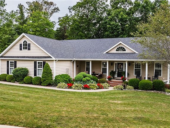 Discover this exquisite ranch home in Lewis Pointe in Vincent Oh. The home is situated within the highly sought-after Warren School District. This residence offers over 4000 sq feet of space including the unfinished storage area and walk-out basement. The property features plush landscaping that enhances its exceptional curb appeal. The outdoor seating area with a fire pit offers a perfect place to gather with friends.