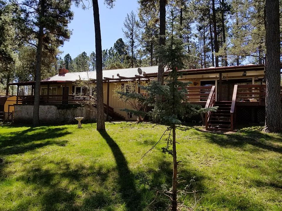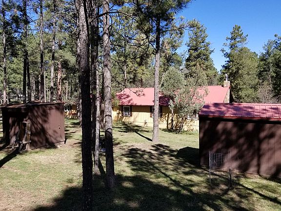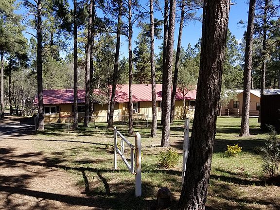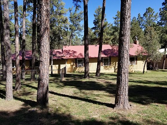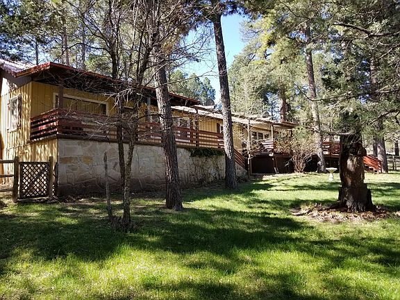 A Real Ruidoso Cabin. This is a one level 2 bedroom 2 bathroom situated on a beautiful lot with over 1/2 of an acre. This home features a large great room with wood floors and knotty pine walls, a sitting room/studio with a wet bar and kitchen with a dining area. There is also a two car attached garage, well house and two storage sheds. The front and side yards are fenced for your furry friends. The lot goes street to street with a paved drive. Now on Lock box