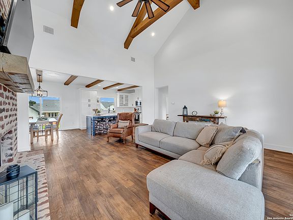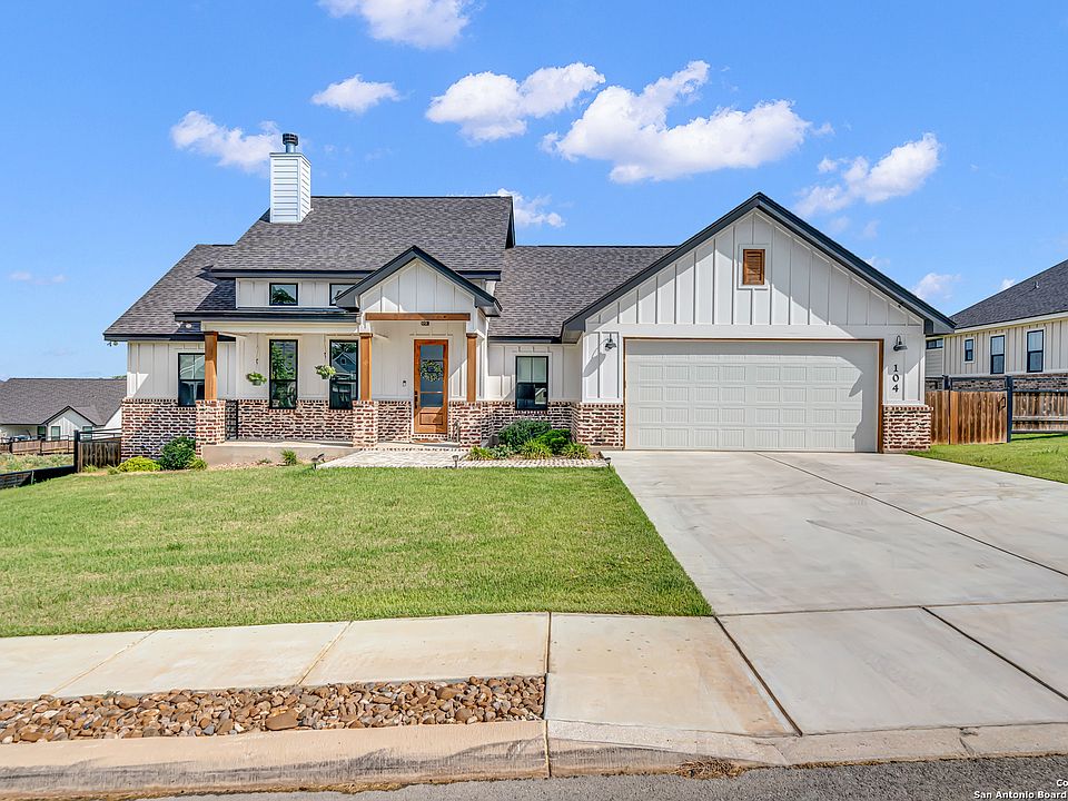 Welcome to this absolutely charming modern farmhouse nestled in the highly sought-after Woodbridge Farms gated community. This stunning 3-bedroom, 2-bathroom home is filled with custom upgrades and thoughtful design touches throughout. Step inside to find luxury vinyl plank flooring, a striking floor-to-ceiling brick fireplace, and soaring vaulted ceilings accented by exposed cedar beams in the spacious open-concept living and kitchen areas. The chef's kitchen futures generous counter space, ample cabinetry and smart design provide exceptional storage perfect for everyday living or entertaining guests. The primary suite features a beautifully designed master closet with built-ins, offering both function and elegance. Outside, the extended back patio provides the perfect spot to relax with a book or host gatherings with family and friends. But what truly sets this property apart is the 24'x24' fully finished workshop-complete with double roll-up doors, a 240V outlet, and a fully decked attic for extra storage. This home effortlessly combines comfort, functionality, and farmhouse charm. Don't miss out on this incredible home, schedule your showing today!