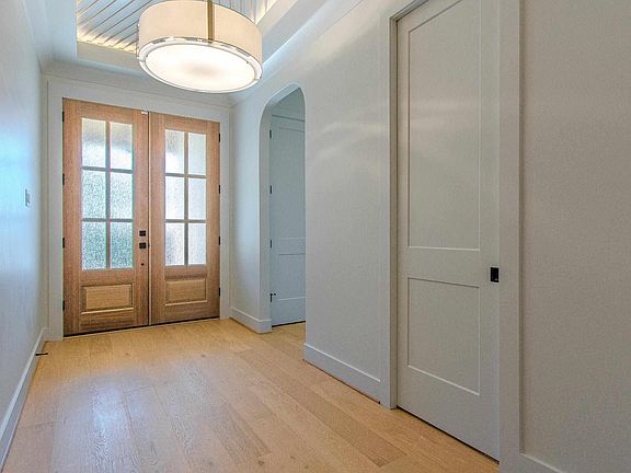 Situated on .31 acre landscaped lot w/greenbelt on right side & rear. Main Level: 6.5x15 10’ Trey ceiling foyer w/half bath. 12x14 Front BR has crank out glass header windows & connecting bath to 11.5x14 BR number 2 w/walk-in closet. 21x21 Great Rm – Elec FP w/remote, bookcases & open to island kitchen w/custom shaker cabinets & separate cabinet area w/wine/beverage refrig. 12x13 Dining area leads to 12x14.5 cov patio & woodburning FP. 15x19 Primary Suite has 4.5x11 sitting area. Custom bath w/2 separate vanity-sink areas, large 2 sided walk-in shower & soaker tub leads to large closet w/built-ins & access to hallway to laundry. Upstairs: Private staircase to 24x26 4th BR or game rm w/separate full bath, walk-in closet & attic storage. Extras: 24x26 double side-entry garage w/5.5x15 workshop area. 10.5x20 single garage has storage rm leading to backyard. 8’ interior doors & 10’ ceilings throughout first floor.