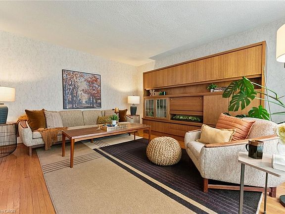 Picture perfect and move in ready this spacious semi detached home offers rare 4 upper bedrooms with stamped concrete drive for two vehicle parking and fully fenced yard to your private lovingly landscaped yard with character gardening shed, spacious concrete patio for outdoor entertaining, calming pond & convenient separate side door entry to access main floor or finished lower level recroom with loads of builtins. The main entry offers great curb appeal with mini porch patio that leads you inside where you are greeted by a spacious foyer with large living room boasting triple window and original character hardwood floors. The updated oak style eat in kitchen with generous dinette overlooks the tranquil gardens plus a convenient 2 piece bath completes the main level. Upstairs you will find original hardwood floors with 4 bedrooms, lots of closet space throughout and a functional 4 piece main bath. Updates include: furnace, most windows, concrete walks / patio / drive, ceramics to kitchen & foyer with lots of care throughout. Close to schools and shopping with easy highway access in a family friendly neighbourhood.