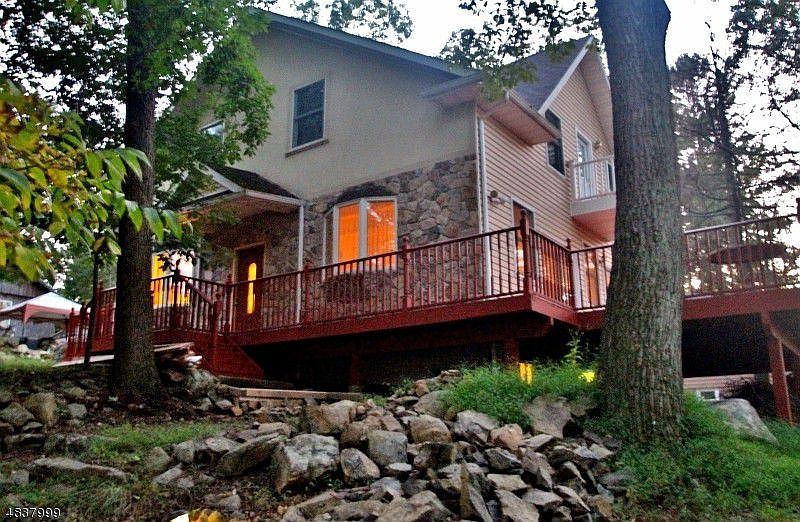 Lovely home w seasonal lakeviews. HW flrs. Huge LR, DR, FR! Potential 4 BRs(Two-bedroom septic) Master bath w jetted tub. Enjoy Wildwood Shores membership - 4 neighborhood beaches, opt. boat slips! Move-in condition! Relaxing wraparound deck w seasonal views of Lake Hopatcong. Close proximity to four Wildwood Shores beaches! First flr offers spacious, open floor plan - living room, dining area, kitchen w granite countertops and ample cabinet space! Perfect for entertaining! The 1st flr. also features two bedrooms and two full bathrooms, all with tasteful, neutral decor. Second flr has a huge great room w balcony overlooking yard, third full bathroom, and two potential BRs w closets. Gleaming HW flrs throughout! Completely renovated and expanded in 2009. Perfect for weekend getaways or full time residency!