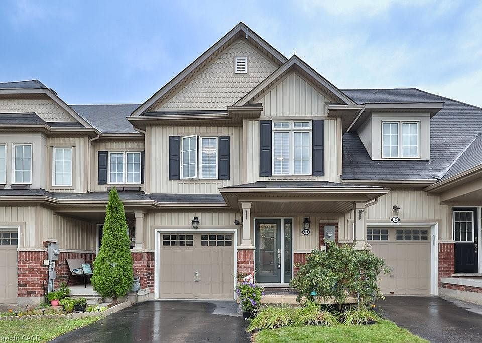 Welcome home. FREEHOLD – Beautifully maintained 3-bedroom, 3-bath townhouse offering 1,495 sq. ft. in the family-friendly West Brant community. Ideally situated close to schools, shopping, walking trails & parks. Premium lot backing onto a pond with no rear neighbours! Move-in ready home features a single-car garage with inside entry, custom new front door, hardwood flooring on the main level and 9’ ceilings. The open-concept living/dining area flows into an eat-in kitchen with updated stainless steel appliances, and a centre island for additional prep space. Newer sliding doors lead to a fully fenced backyard oasis, perfect for extending your living space outdoors. A gardener’s delight that feels like country living within the city. Upstairs you’ll find newer vinyl flooring, a spacious primary suite with walk-in closet and ensuite with an oversized shower, 2 additional bedrooms, a bright home office nook and a 4-pc bathroom. Stylish finishes, bright open layout, and a premium pond lot with a backyard oasis…this one won’t disappoint!