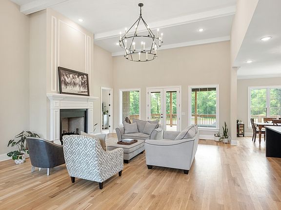 CUSTOM HOME on 5.1 ACRES, perfect for those seeking space, privacy, and a connection to nature. Featuring a HISTORIC STONE WALL and a CREEK RUNNING THE ENTIRE LENGTH, Ideal for Recreation, Relaxation, and added Seclusion. Inside, the Soaring 14' Ceilings and an open floor plan create an airy, inviting space. Custom Cabinetry and lightly stained hardwood floors flow throughout complementing the clean, modern aesthetics. A Wood Burning Fireplace, easy conversion to gas if desired, anchors the main living area. All bedrooms located on main level, along with a designated office. Upstairs find a large Bonus Room with Wet Bar and an additional bonus area could be for media room or hobby room.