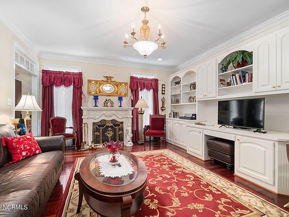 You need to sit down & take off your socks before they get knocked off! That's not a genteel thing to say, is it? Certainly not when we're about to consider this classic example of what one would expect from a famed Southern Living home! And first impressions do NOT disappoint! What's the first thing you think of in such a home? PORCHES! Right! On the front, there's an expansive 64' x 9' porch & on the rear, you have a 32' x 9' porch. When you're not enjoying the cool shade of the porches during the warmer months, you can enjoy a refreshing dip in the 15' x 31' kidney shaped in-ground pool. Moving inside this custom built home, you're immediately stunned upon entering this marble floored grand foyer adorned with a large chandelier. Throughout the majority of the downstairs, aside of the Brazilian cherry hardwood, you'll find delightful trimming such as large baseboards, chair molding, crown molding, & box wainscoting. In the Den & Parlor (Formal Living Room), you'll find custom built-in cabinets and shelving. Other details you'll find include sidelights at the front door & sidelights over doorways of abutting rooms to the foyer to allow as much natural lighting indoors as possible, pockets doors, a walk-in pantry, double wall ovens, granite kitchen countertops and custom Zaytoun cabinets, & floor length windows. There is a huge master ensuite with tray ceiling, large his & her closets, a jetted tub, double vanity with makeup area, tile floors, shower, & powder room. Elsewhere, you'll find a perfectly cozy office on the second floor along with a Bonus Room that has endless possibilities (& a back stairwell down to the laundry room); on the first floor, enjoy your Carolina Room just off the kitchen & breakfast nook, the perfect retreat to sip on morning coffee in preparation for the day ahead. Additional features include an in-ground irrigation system, gracious plenty closets and storage, a generator transfer switch, a circular driveway, & vinyl cedar shake siding.