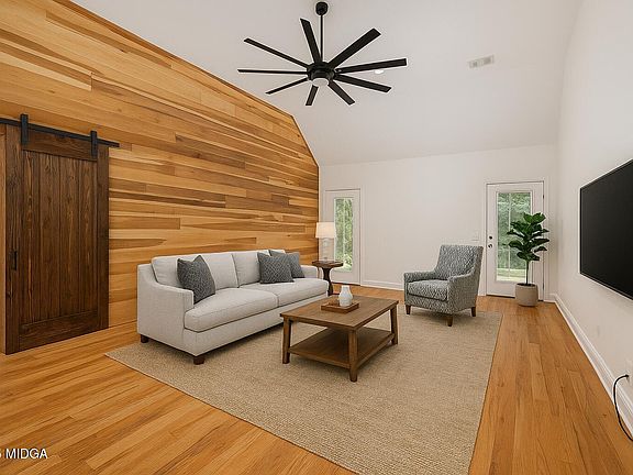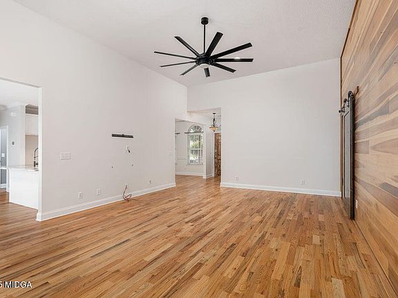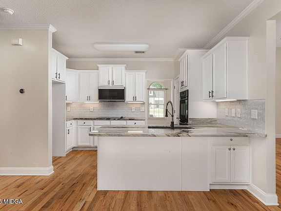 $2,500 lender credit available, ask for details. Beautifully Updated 4BR/2.5BA Home on Corner Lot with RV Hookup - Near Robins AFB. This well-maintained 4-bedroom, 2.5-bath home sits on a desirable corner lot and features extensive interior updates throughout—including new lighting, fixtures, paint, cabinets, counters, and flooring. The spacious kitchen is equipped with granite countertops, double ovens, under-cabinet lighting, updated appliances, and a striking glossy wave subway tile backsplash. The living room showcases warm hardwood floors and a custom tongue-and-groove poplar wood accent wall with black walnut trim.