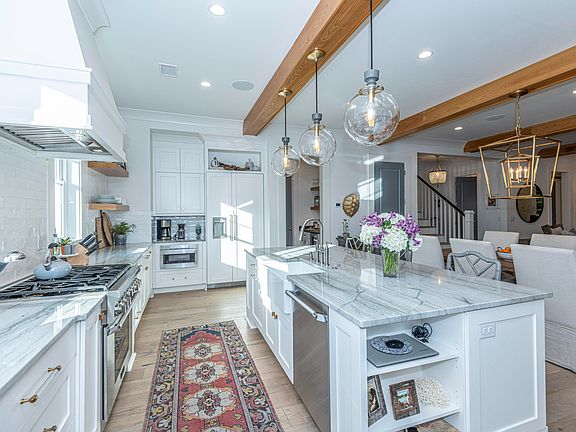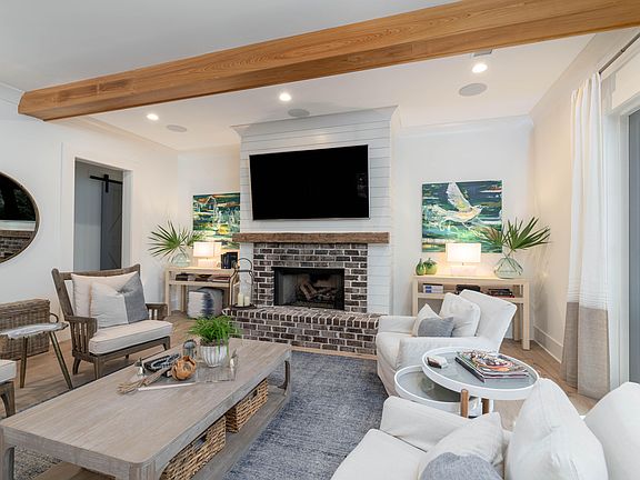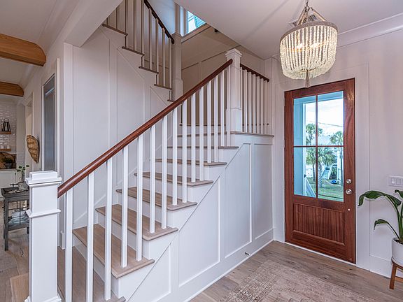 Beautifully designed 4 BR, 3.5 BA coastal cottage was built in 2017. Elegantly styled with soft colors, shiplap, Old Charleston brick surrounding the family room and screened porch fireplaces, and wide plank white oak hardwood floors throughout living space and bedrooms. Ten foot high beamed ceilings and a bank of French doors create a light filled living space. The upscale kitchen features a large island, white tile backsplash with open shelving above white cabinetry, all Thermadore appliances, a pantry plus a butler's pantry. All of the windows and doors including the French doors are hurricane resistant up to 120 mph. You'll swoon over the luxurious master bath with free standing tub, walk-in shower and tile flooring. Master suite is on the main floor. Upstairs 3 BR & 2 full baths Bedrooms 3 & 4 share a jack and jill bath with double vanity. Elevated home has drive under garage for two cars plus plenty of room for golf cart and all your beach gear. The backyard is fenced. Walking distance to the beach access at Breach Inlet and also 2nd Ave.