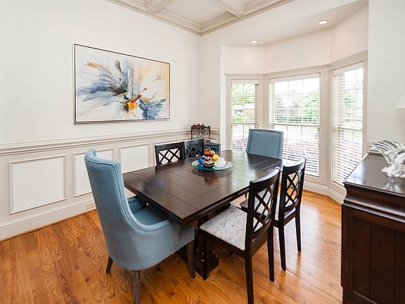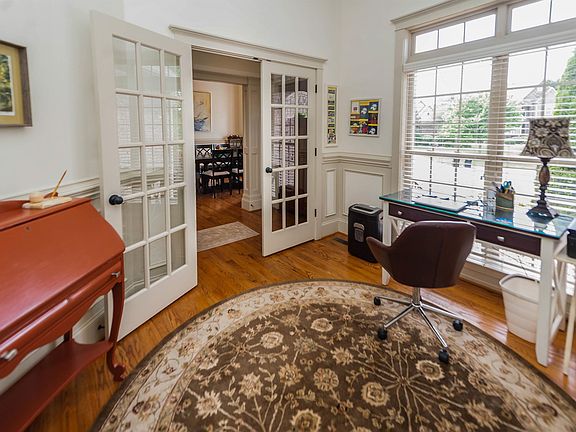 Exterior brick and stone home on 1/2-acre lot, rear screened porch and deck. The interior has arched openings, coffered ceilings, dining room, office with French doors, gas fireplace, and custom trim moldings. Custom kitchen features pull-out drawers, spice racks, solid surface counters, gas five burner cooktop and refrigerator, new in 2022, and a large breakfast area. Laundry room with sink. Upstairs has two additional bedrooms that share a jack-n-jill bath. One of the bedrooms has access to a large walk in closet, and attic access. Huge flex room. Wood blinds, custom stamped driveway. Lots of upgrades have been done since the home was purchased in 2022. Upgrades in 2023 include flex room skylights, waterproof laminate flooring in upstairs bedrooms and flex room, sun tunnels in upstairs hallway, Rinnai tankless water heater, acrylic shower with frameless glass in guest bath, gutters and Leaffilter guards, new roof, porch screening, new washer and dryer. In 2024, frameless shower enclosure in master bath was installed. Painting has been done in upstairs bedrooms to neutralize wall colors. Detached storage racks around the perimeter of the garage remain. Detached coat rack and coat rack/bench in mud area in garage remain. Refrigerator (2) in garage remains. Satellite Dish is non functioning. Seller has installed sod in rear and side yard where repairs were made.