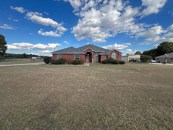 Enjoy country living at its best on a full acre, just minutes from downtown Weatherford's dining and shopping. This 4-bed, 2-bath home in Millsap ISD features an open layout with lots of natural light and great storage, including walk-in closets and 3 linen closets. The living room has a cozy wood-burning fireplace, and the kitchen offers an island, breakfast bar, walk-in pantry. The primary suite includes double sinks, a jetted tub, and a separate shower. Make sure and check out the 3 car garage! Zoned for horses. Relax or entertain on the patio overlooking the large fenced yard. Refrigerator, Washer and Dryer included!