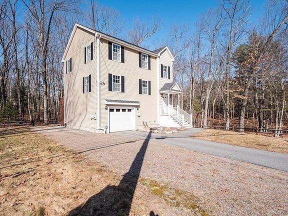 This young 3 bedroom colonial cannot be beat, located on over 2 acres of heavily wooded land and convienently just mins from the NH boarder. Featuring a spacious first floor layout with a large eat in kitchen, furnished with Granite countertops, upgraded Stainless Steel appliances and beautiful cherry hardwood throughout. The first floor also features a large livingroom and bathroom with laundry. A hardwood staircase leads up to three large bedrooms and a spacious full bathroom. Featuring all the modern amenities you could look for including central AC, forced air heating, a partially finished basement for a kids room or at home office. As well as walk out access to the back yard where you will find a brick patio with fireplace off of a large back deck. On town sewer, private water and is already wired for a generator. The area has great access to a residents beach along Mascuppic Lake, w an updated play area and park as well as the LTD State Forest.