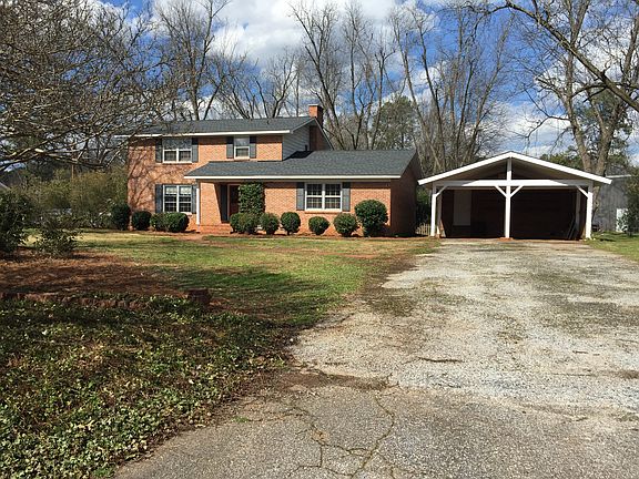 This beautiful home is in the heart of Plum Branch, SC. It features four bedrooms and three baths, with large sized cedar lined closets. One generously sized bedroom is on the main level and could serve as the master, or an office/ recreation room and has hardwood floors. One bedroom upstairs has a newly renovated on-suite bathroom and can serve as the master, while the other two bedrooms share a hall bathroom. Upstairs is all hardwood floors, with tile in bathrooms. In addition to the large downstairs bedroom, there is an informal living room with new carpet and gorgeous fireplace, a full bathroom, newly renovated eat-in kitchen with stainless oven and microwave, laminate floors, an adjoining formal dining room (hardwood floors) and formal living room (carpet). The house has been freshly painted, has new pipes, new roof, and new deck. The property features ten mature pecan trees which are income producing. The garage is detached and has a storage room with shiplap walls. An adjoining property that is being sold separately features a 50 x 60 metal shop building with small apartment in one corner.