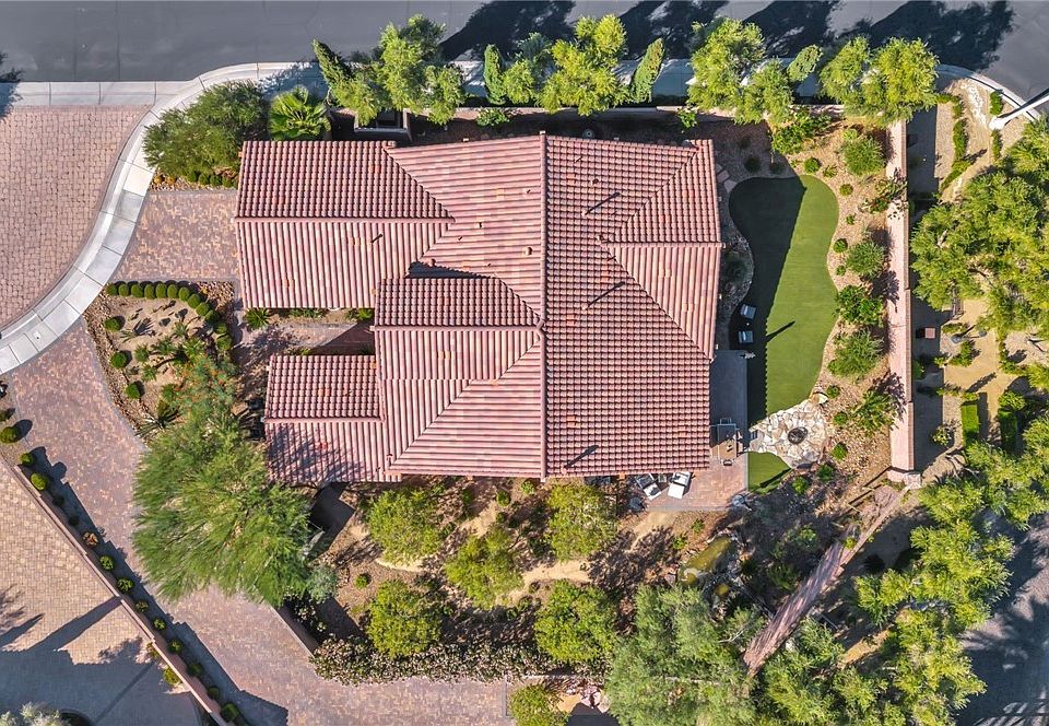 This extraordinary upgraded single-story residence, set on a premier corner lot in the gated Bella Fiore community, combines timeless elegance with modern comfort. The open-concept design highlights a gourmet kitchen, formal living and dining rooms, and spacious living areas tailored for both entertaining and everyday living. Outdoors, the expansive 11,326 sq. ft. lot is transformed into a private oasis featuring a covered patio, cozy fire pit, tranquil pond with cascading waterfalls, and a lush secret garden that invites peaceful retreat. Designed for relaxation as well as gatherings, the home captures the essence of resort-style living in every detail. A coveted $25,000 Lake Las Vegas Club membership is included, providing access to world-class amenities and a vibrant social lifestyle. Just a short golf cart ride to the clubhouse & green belt, this property offers the perfect blend of sophistication, leisure, and convenience in one of the most desirable communities in Lake Las Vegas.