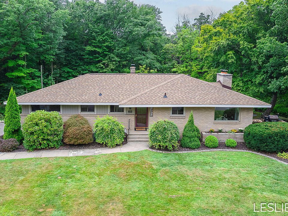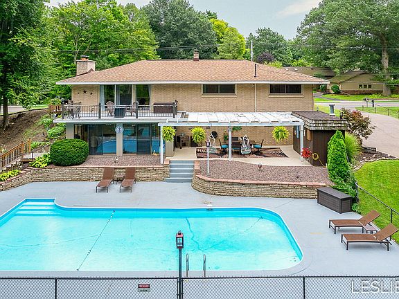 Spectacular Setting! Introducing this rare and lovely mid-century modern home in Holland Heights perched high, on almost 3 city lots (1.28 acres). The main floor features many windows facing the stunning wooded, ravine-surrounded lot. The sloped yard and natural, flowing water is soothing and home to abundant wildlife. The solid-built walkout ranch features 3 bedrooms on the main level with a full bath and 1/2 bath/laundry room combo. The lower level offers an additional living area, a full bath, storage areas, garage access and a 3 season room that offers easy access to the pool and patio. Entertaining is easy with 2 decks, a large patio with a gazebo, a pool house with an additional 1/2 bath, a playground and a sparkling, fenced in-ground pool. This home won't last long! !