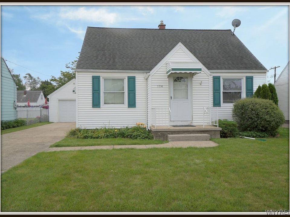 Come home to the Quiet Life: Welcome to 104 Coventry Rd in desirable, walkable Village of Kenmore! Stunning white maint free ext totally fenced yard (pet/child safety) manicured lawn says you've arrived! Newer front door to entry foyer to brilliant fresh white interior & hardwood floors on first floor! Spacious LR boasts newer windows as does entire home. Eat in kitchen with white cabinets incl brand new electric stove & refrigerator (also washer/dryer) in basement! Second floor with large third bedroom and ample space to add bath. From second bedroom newer door/storm to maint free deck w/vinyl railing enclosure! Enjoy this ideal spot to relax and survey your spacious backyard! Extra large 1.5 car det garage w/opener completes this charmingly simple cape! For convenience of location Coventry can't be beat: between Delaware & Elmwood find thruways, shopping & restaurants within walking distance!