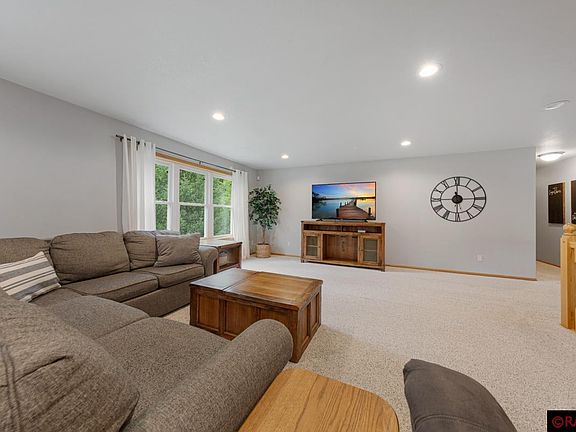 WELCOME HOME! This quality built & well cared for rambler sits on over a half acre lot and boasts over 4000 sq feet. With 5 bedrooms and 4 total bathrooms, this one has it all. Main floor has 3 bedrooms, 2.5 baths, including the primary suite with private bath. Laundry located on this level which is super convenient. Nice sized living room, dining area, and kitchen. Kitchen has Cambria countertops with built in seating for 4-5. Large windows with plenty of natural light & beautiful hardwood floors (including under living room carpet). Maintenance free deck overlooking a tree-lined back yard. Head downstairs and find second family room area with fireplace, wet bar, another two bedrooms, and bathroom. Large utility room with access to garage via stairs and tons of storage. Extra deep 3 stall garage. Yard has mature trees, in ground sprinkler & firepit area. Set up your showing today, pack your bags & move on in.