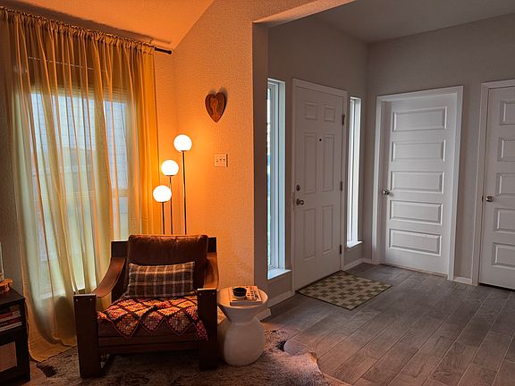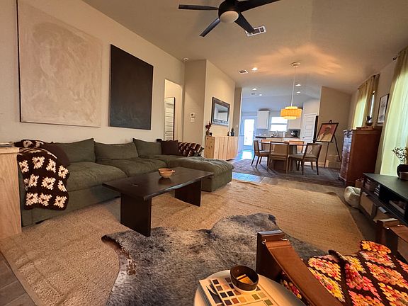 This beautiful residence offers an open floor plan with 10-foot vaulted ceilings and an abundance of natural light throughout. Featuring wood look tile flooring in all main living areas and plush carpet only in the master bedroom and closet, this home balances comfort with modern elegance.