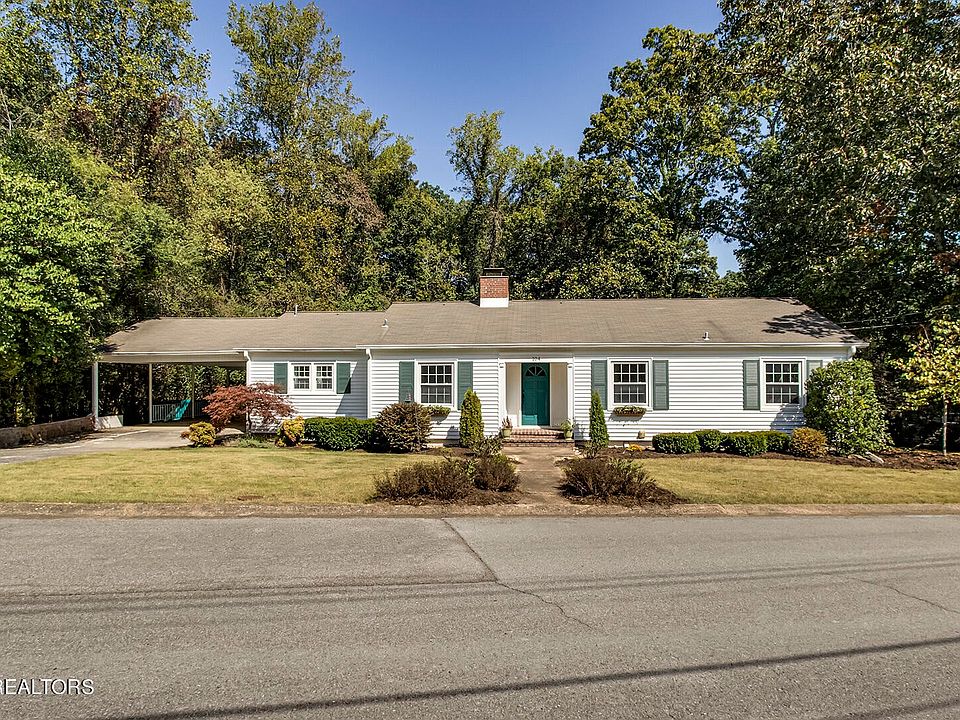 This beautiful property is an absolutely gorgeous home site! Remodeled to accommodate a beautiful new kitchen and island overlooking the living room. Walk out to a covered patio overlooking private fenced-in backyard with patio 27x35 with a built-in fire pit. Owner Suite displays completely remodeled bathroom with tiled shower. Basement provides a second owners Suite with an enormous bedroom 14x19 with its own in suite full bath and walk-in closet. Large family room with built-in cabinetry. The exterior displays a two-car carport where you can park four cars underneath it. Gorgeous level yard encompasses everything you need and more!!