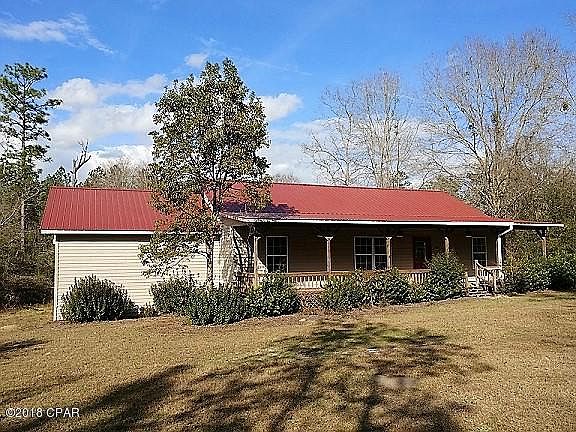 Renovated home just south of DeFuniak Springs, Florida on 4.05 acres in a quiet, private location. Covered front porch with ceiling fans runs the length of the home. New metal roof with warranty. New Goodman 2-1/2 ton HVAC and new thermostat. Renovations include new interior paint, carpet, kitchen cabinets, stainless steel stove, dishwasher, ceiling fans, doors and back deck. Attached 2-car garage with plenty of room for storage. Shed in back yard. Close to WalMart, Healthmark Hospital, and approximately 30 minutes to the beaches.