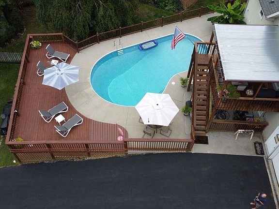 Beautiful home with loads of charm. The home is located on a quiet cul-de-sac rd. The fenced in backyard has a cozy covered deck overlooking a large in-ground pool. The stunning great room has a high cathedral ceiling and a beautiful stone gas log fireplace, entry level laundry, finished basement with a garage attached. New granite countertops. Large downstairs family room.