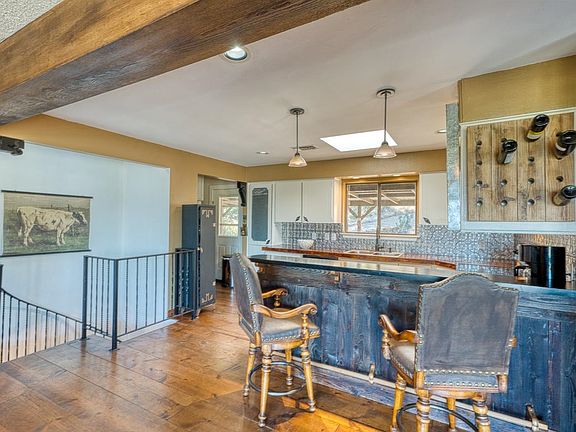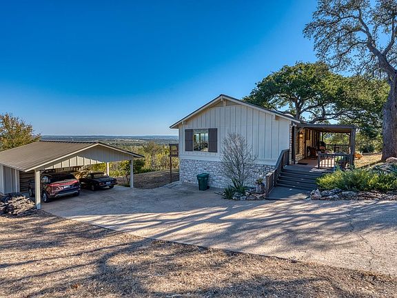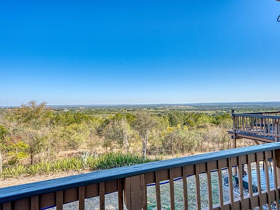 Country living in a resort. Located in Horseshoe Bay on .60 acres (two lots) and bordering a high fenced ranch, with 4 bedrooms 3 1/2 baths, this rustic home is very private and has long panoramic unblockable hill country views. Sit on the back deck at night and see the lights of the entire cities of Cottonwood and Marble Falls. Hugh living areas both upstairs and downstairs. There is a primary suite on both levels. With covered porches in the front and back, relaxing outdoors in privacy is just a step away. From the back porches the views are amazing. The covered front porch is 60 feet long and is nestled in the large Oak trees . A new metal roof and exterior paint just completed.