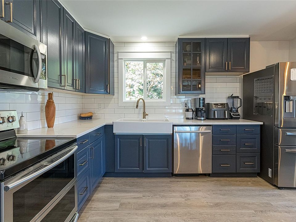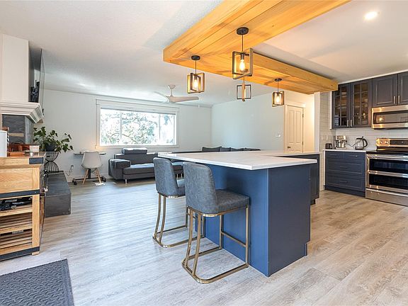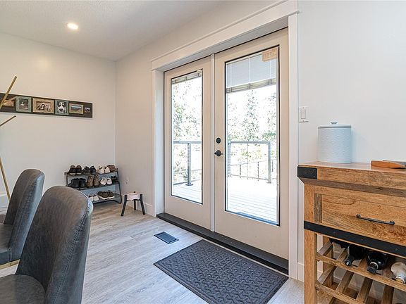 Open House Sat Oct 4th 1-3pm. Perched atop a gentle rise in View Royal, this beautifully updated home offers privacy and natural light. Large windows brighten the open-concept living and kitchen area, anchored by a cozy wood-burning fireplace and durable vinyl plank flooring. The upper level features a freshly renovated kitchen and bathrooms, while the lower level provides a self-contained 2-bedroom suite—ideal for in-laws, guests, or income. Recent upgrades add comfort and peace of mind: a kitchen renovation with quartz countertops and new appliances, 200-amp electrical service, new roof, efficient heat pump, and upgraded deck railings. An expansive, sun-soaked outdoor deck is perfect for large gatherings and summer BBQs. A newly built detached shed/workshop adds flexible space for storage, hobbies, or projects. Steps to hiking at Thetis Lake, minutes to Victoria General Hospital, and a short stroll to the Galloping Goose Trail for an easy commute downtown or to Westshore shopping.