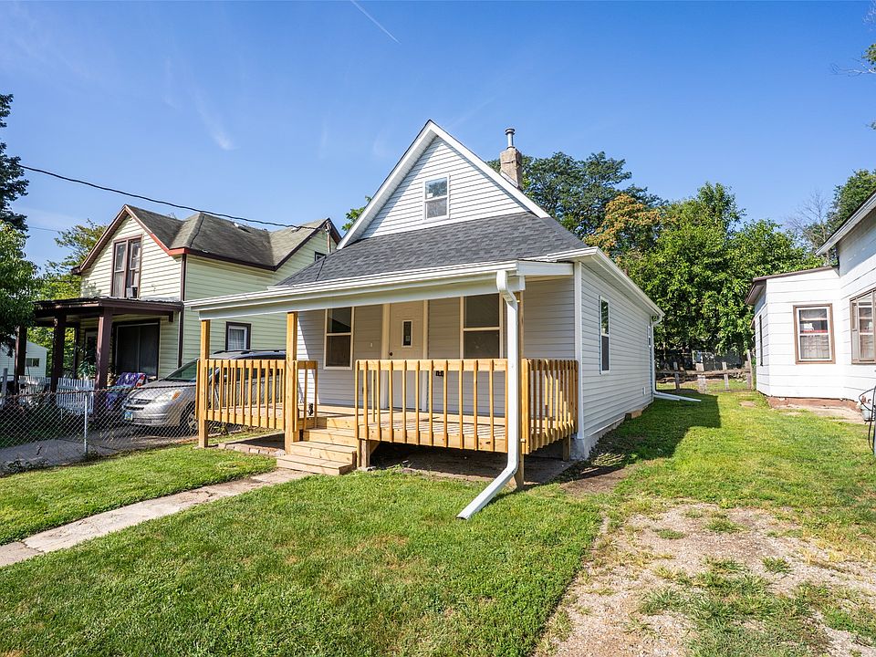 Gutted to the studs this completely remodeled 1 1/2 story home features a newly concreted foundation, new roof, new siding, new wiring, new electrical panel, new plumbing, new drywall, new insulation, new windows, brand new kitchen with new appliances, new bathroom fixtures, new water heater, new AC, a new front porch, and new back deck. Home includes the convenience of a first floor primary bedroom and first floor laundry room. Invite friends over with room for a breakfast nook table as well as a more formal dining table. Full bathroom includes a jacuzzi tub to relax in. Up the stairs you'll find two more attic bedroom spaces with closets. With alley access into a fully fenced backyard, this beauty is nestled just outside of downtown on a quiet street.
