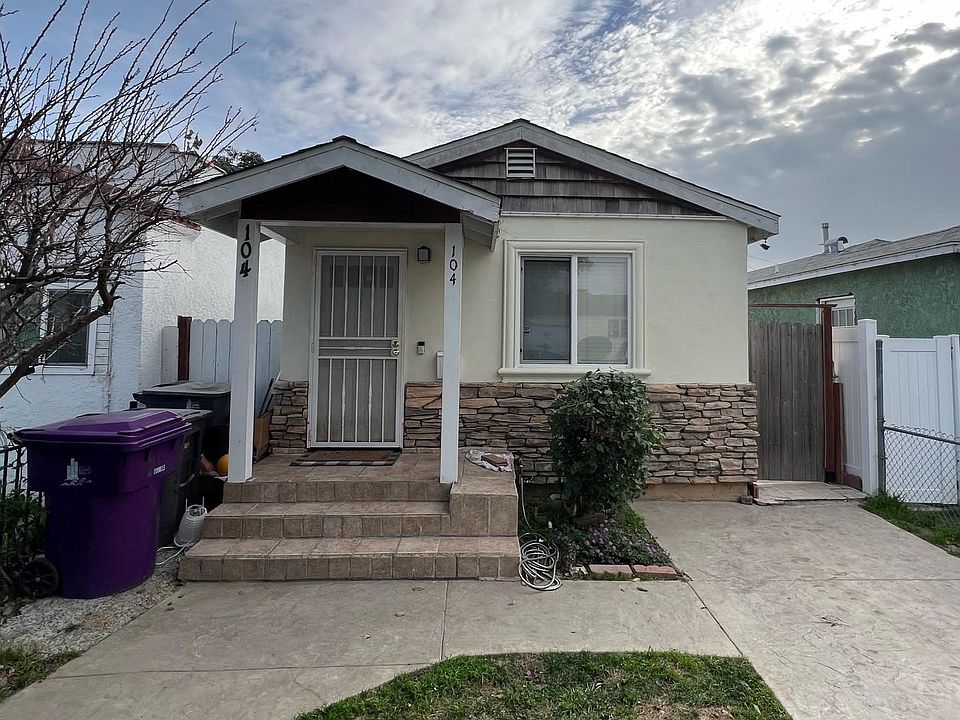 Available immediately is this charming, 2-bedroom, 2 bathroom single family home in North Long Beach! The house is adorable with an open concept, vaulted ceilings, distressed style floors, and dual-pane windows. The kitchen has recessed lighting, granite counter tops, plenty of cabinet space, and all black appliances (i.e. fridge, stove, microwave, and dishwasher) come included. An in-unit washer and dryer is also included. Down the hallway is a carpeted bedroom with a bathroom right next to it. Further down the hallway, is the large, carpeted primary bedroom with en suite bathroom. The bathroom includes a double vanity and spacious shower. Off the primary bedroom is a sliding door that leads to a small deck in the back yard with an orange tree and a shed for additional storage. Central air conditioning and heat throughout the house ensures you will be comfortable year-round. One gated parking spot is included, with street parking also available (Tuesday/Wednesday street sweeping). It is in a great location, close to the 91 and 710 freeways. Additionally, it is about 1.5 miles away from grocery stores such as Trader Joes, Vons, Aldi, and about that far from Bixby Knolls coffee shops, Steelcraft, as well as tons of other delicious local restaurants/food trucks. This is a non-smoking property and a 600+ credit score with proof of 2.5X gross monthly income is required. A maximum of 2 pets are allowed for $50 a month extra on top the rent. First month's rent and deposit due upon agreement. The property is able to be viewed in person at this time. If you think this can be you next home, please reach out! 12 month lease is required. Renter is responsible for all utilities. A maximum of 2 pets is allowed at $50 a month extra on top of the rent. This is a no smoking property. Credit score and background check required upon application.