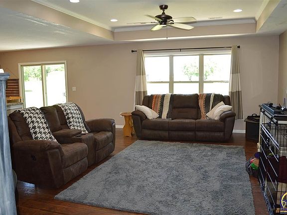 Enjoy small town living in this gorgeous ranch style home! Granite countertops, open floor plan, beautiful floors, amble storage in the attic, safe room/tornado shelter in the master closet, extra wide hallway, 10x12 storage shed with heating and air currently being used as a home office.