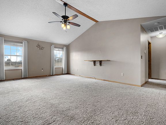 Cute Ranch Style Home with 1765 sq. ft. 3 Bedrooms, 2.5 Baths, 2 Living Areas and it sits on almost a full acre of Land! The Home offers some unique features such as a Main Living Area with Vaulted Ceiling, Open Kitchen/Dining Area with Wood Cabinetry, Island, Stainless Appliances including the Refrigerator, Stove, Microwave and Dishwasher, Walk-in Pantry and the Dining Area with sliding glass doors leading to the Deck and Fenced Back Yard. Nice Master Bed and Master Bath, 2 additional Bedrooms plus another Bath and Half Bath! The Garage has been converted into a Second Living Area and adds a Laundry Closet as well. Additional Features include: Full Home Generator, Natural gas heat and some Newly installed Vinyl Plank Flooring. The Exterior of the home offers upgraded siding with Rustic Accents such as Shutters and a Covered Front Porch with Rustic Posts, Outbuilding with water and electricity, a Carport and a Storm Shelter. This one is located in a great Neighborhood and one you won't want to miss!