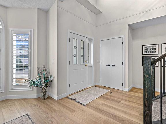 ***Open House Sunday November 2nd 11:00-1:00*** Welcome to this beautifully kept 4-bedroom family home tucked away in one of NW Calgary’s most sought-after estate neighbourhoods, the Hamptons! This place has the perfect mix of comfort, space, and convenience, it is ideal for families who love a great community vibe. As you walk in, you’ll notice the high vaulted ceilings and the eye-catching, updated staircase that really sets the tone for what this home has to offer. You start with a bright formal living room, where stylish plantation shutters add a touch of elegance. Right next door, the formal dining area is adorned with a lovely bay flanking window and tons of natural light. Vinyl plank flows through the entire main level, bringing a sense of style and ease of care that everyone can appreciate. The kitchen features two-tone cabinets, durable wrapped arborite counters, a black granite sink, and a sleek black appliance package. There's also a small workstation for holding your paperwork and laptop. The kitchen also includes a casual eating nook that leads to a cozy, sunken family room. The family room has a wood-burning fireplace with gas assist and is flanked with built-in bookshelves. Finally, just outside the eating nook you have access to the covered deck and the west facing backyard. This main living area is a perfect spot to relax with the family or entertain your guests, whether it is a BBQ in the summer or a cool winter day. The main level also includes a handy 2-piece powder room, laundry area, and a private office with its own unique shower — great for guests or even your a place to clean up your pets! The updated winding staircase takes you upstairs where you will find the spacious west facing primary bedroom. The attached primary suite includes a walk-in closet, separate shower and a large-jetted tub. here are also two additional good sized bedrooms and a bathroom, so this makes for a great home for your growing family. The fully finished basement adds even more living space, with a big rec area, a family room, a fourth bedroom (non-egress window), and plenty of storage. Outside, the sunny west-facing backyard is perfect for kids, pets, or weekend barbecues — lots of space to play and unwind. Quick access to Stoney Trail means you are only minutes from access to the highway out to the mountains, Cross Iron Mills or the airport. Located just steps from parks, tennis courts, walking paths, and close to schools, shopping, and amenities, this home really has it all.