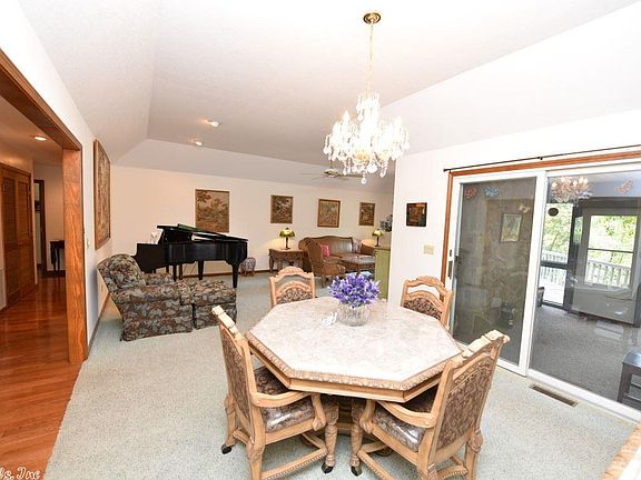 Stunning home with quality throughout. Enjoy the quiet street just across the from Mountain Ranch Golf course. This home has been well cared for. Tons of storage, golf cart garage, lower level den for guest & addl privacy, low maintenance yard w/ beautiful landscaping. Screened-in porch with removable glass for the windows. The deck is a great place to enjoy the morning listening to the birds or having a glass of wine in the evenings. Wood floors, granite, SS appliances. Be on the lake in 5 min. 3 lots