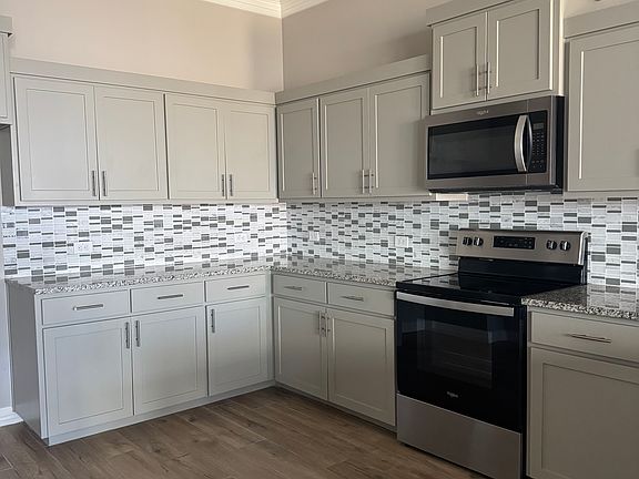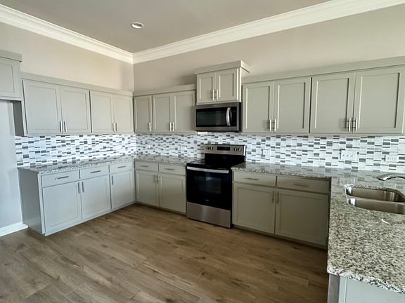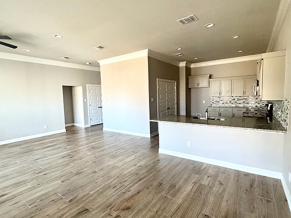 This beautiful one-story duplex features a spacious open floor plan with 3 bedrooms and 2 full baths. It includes high-quality details like crown molding, granite countertops, and tile flooring throughout. The home also offers a large laundry room with a sink, a master suite with a walk-in closet and double vanity, a 2-car garage, and a covered patio for outdoor enjoyment. 12 months or more