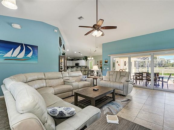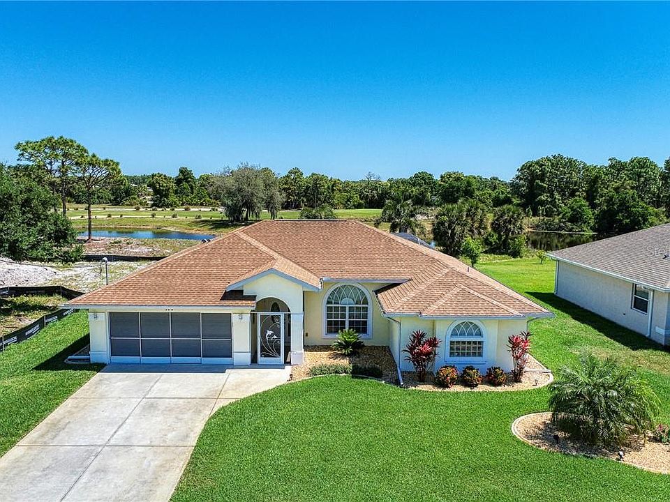 "Highest and best offer by 5pm Friday 4/16" Gorgeous Joshua Johnson built home, exemplifying quality construction and located in the very desirable Pinehurst section of Rotonda West. Some of the many features in this incredibly charming and very cheerful home include large, porcelain tile flooring throughout, whole house surge protector, hurricane rated sliders, vaulted ceilings, walk-in closets in every bedroom and an open and airy floorplan. You'll find a fun, yet subtle, Floridian-style color scheme throughout the home and in all the rooms. Upon entering the main living area, you'll be immediately drawn to the outside and onto the spectacular lanai with new pavers and the sparkling free-form heated pebble-tech pool and spa. The beautiful lanai and pool setting also overlooks a large scenic pond and has a distant golf course view. The home features the ever-popular split floorplan, where you'll find an over-sized master bedroom suite on one side of the house with direct access to the lanai and pool and his & her walk-in closets, and the spacious master bathroom boasts dual sinks & vanities, a soaking tub and a tiled Roman shower. On the other side of the home, the two guest bedrooms share a cabana bath offering easy access to the lanai and pool. The inviting open-concept kitchen is nicely appointed with stunning granite countertops, a breakfast bar, a large pantry and new stainless-steel appliances. Recent upgrades to the home also include a new hot water heater, new hurricane shutters, a new humidistat and a new irrigation pump and the home is also fully equipped with an ADT security system and a Fresh-Aire UV light germicidal system. At an additional cost, the home can also be sold partially furnished and turn-key. Rotonda West is a very popular golfing community, there are many fabulous nearby restaurants, great shopping options and it's located just minutes away from some of the most beautiful white sandy beaches on the SW Gulf Coast of Florida!