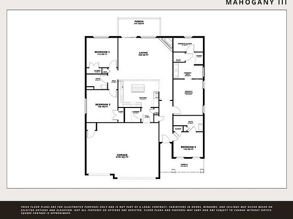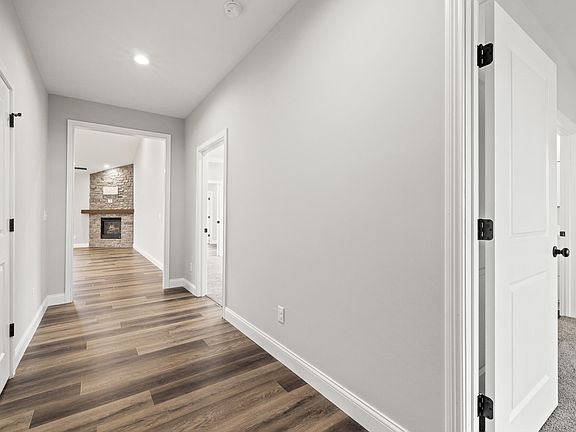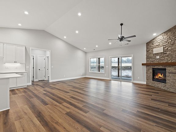 Step into the stunning Mahogany III, a beautifully designed ranch home. Featuring 4 spacious bedrooms (2 of which are ensuites), 3 full baths, & a 3-car garage, this home blends style & functionality. The welcoming foyer opens to a vaulted great room, filled with natural light & seamlessly connected to the kitchen & dining area. Enjoy the serene outdoor living spaces with both covered front & back porches, perfect for relaxation & entertaining. The owner's suite, privately situated at the back of the home, boasts a luxurious walk-in tiled shower & a deluxe built-in bath. The other primary suite offers ample space & a bright, airy atmosphere. The kitchen is a chef's dream, featuring quartz countertops, under-cabinet lighting, a white picket backsplash, white shaker cabinets, & a vented hood above the gas range. The centerpiece of the living space is the cozy gas fireplace with a custom wood mantel. Additional highlights include consistent black hardware throughout, vaulted ceilings, stainless steel appliances, & a tankless water heater for modern comfort. Builder provides a 10 year structural warranty backed by Liberty Mutual! Schedule a private showing today!