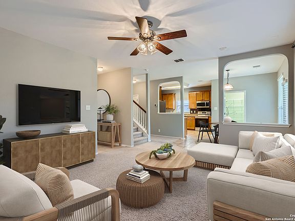 **Open House: 9/20, 9/21, and 9/22 11am-3pm; 9/28 & 9/29 1pm-4pm.** Welcome to this meticulously maintained 3-bedroom, 2.5-bath home in Cibolo, offering a versatile floor plan designed to meet a variety of needs. With two living spaces and two dining areas, this home provides plenty of flexibility for entertaining, working from home, or creating a cozy retreat. The layout adapts easily to your lifestyle, whether you need space for family gatherings or a quiet home office. Just steps away from the community pool, park, and playground, this home is perfect for those who enjoy outdoor activities. The level yard, bordered by mature trees, ensures privacy in the backyard, offering a peaceful escape. Located in Guadalupe County, you'll enjoy a favorable tax rate of just 1.93%. Cibolo's prime location near New Braunfels and San Antonio makes commuting, shopping, and recreation easily accessible, while the growing community blends a small-town charm with green spaces, retail, and industry. Come explore this beautiful and adaptable home in person today!