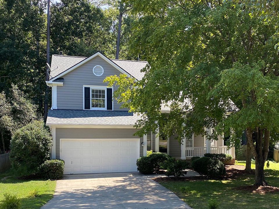 3 bedrooms with 2 car garage Single house in Cary! Great Location! 10ft+ High ceiling in living room, granite countertop, bay window, and Stainless steel applicants in Kitchen. Bay Window in Dinning area. Deck and Private Fence in the backyard. There is Greenway beside the backyard. The property is close to High House Rd, and a lot of restaurants! Great school district.