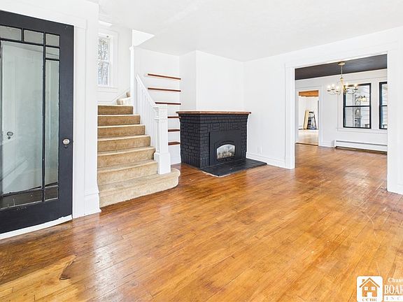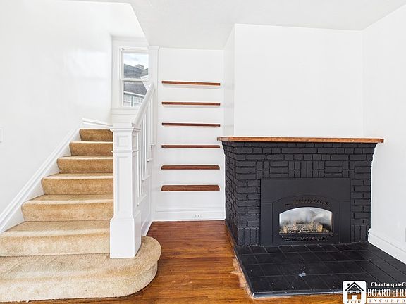 This charming Old-Style home sits on a quiet cul-de-sac in Olean’s desirable Seneca Heights neighborhood. Step inside to a welcoming foyer that opens into a spacious living room featuring hardwood floors, a large bay window, a gas fireplace, and a built-in bookcase. The formal dining room leads to an expansive family room accented by exposed wood beams, modern white wood walls, and pegged hardwood floors. Adjacent to the family room are a convenient first-floor laundry room and half bath.