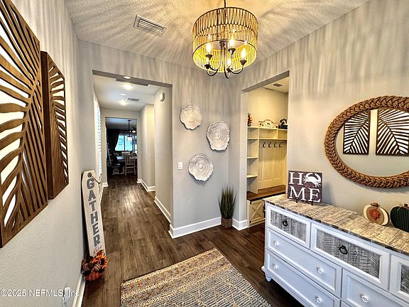 Move-in Ready 1-year old 3BR/2BA one-story single-family home (not a Villa) in NOCATEE Crosswinds Community on a premium corner lot with a modern coastal elevation. Popular Jackson Floorplan features almost 1,700sf of living area with open floorplan and Plantation Shutters built by Providence Homes (one of the most Energy efficient home builders in America). Gourmet Kitchen w/granite countertops and walk-in pantry. Large Owner Suite with Tray Ceiling. Spacious Master Bath with walk-in shower & large walk-in closet. Triple Slider Glass doors open to Covered & Screened Lanai. Pavered Driveway and 2-Car Garage. Enjoy lifestyle of luxury. Nocatee is home to world class amenities, with many tranquil green spaces, pools, dog parks, outdoor recreation and much more! Close to Nocatee Town Center providing restaurants, shopping, banking and medical facility options and top rated schools. Only 20-25 min from historic Downtown St Augustine, and 45-50 min from Jacksonville Int'l Airport. ADDITIONAL FEATURES AND ITEMS INCLUDED: Front Ring Doorbell Camera along with additional Ring Cameras, Keyless Entry Door Lock, TV Mounts for TVs, Patio Curtains, Storage Racks in Garage, Attic Ladder from Garage and from Hallway providing extra attic storage. Drop Zone/Mud Room off Foyer. Huge extended Master Walk-in Shower. Privacy Blinds added on screened in lanai as well as a gas hookup for grill. Gutters also have been added on home.