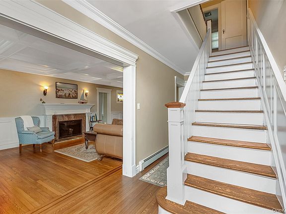 Attention property lovers! A center hall colonial home on over half an acre of land! 4 bedrooms on same level, 2 bathrooms, waterproofed basement with a separate entrance, detached garage, butler pantry, crown moldings, upstairs laundry, Jennair kitchen appliances, coffered ceiling in the living room, kitchen with granite countertops and a large island, banquet size dining room, den, Andersen windows, hardwood floors, gas fireplace, 2 zone heat, 200 amp electric, roof completely redone with existing plywood removed and new plywood installed. Also 1 layer of Architectural Shingles Owens Corning installed. Young boiler and hot water heater (2012), and a full walkup attic! Bonus: plenty of room to accommodate parking for multiple cars!