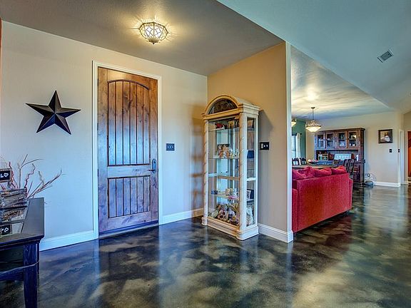 Beautiful Ranch Style home on nearly 2.5 acres. 4 bedroom, 2.5 bath, 3000 sq feet of stained concrete floors. Home features fabulous open concept kitchen with lots of cabinets for storage, beautiful granite counters, rocked island, new stainless appliances, walk in pantry, huge laundry room with sink, master suite with 2 separate showers in the master bath! Huge back yard is completely fenced! Bring your pets! The barn has two horse stalls, tack room, wash area, and is large enough to park a full size truck.