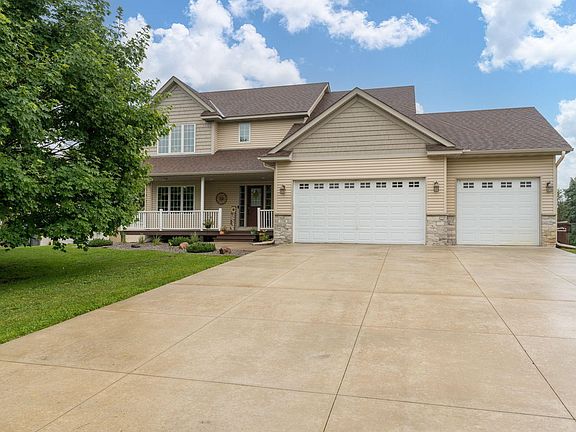 Quality Built and well kept shines through this home! Beautiful large front porch welcomes you! The large kitchen and dining room offer real wood floors!  The kitchen has ample raised panel birch cabinets, walk-in pantry and nice size island.  The open floor plan is great for entertaining!  Good size dining room w/ wood floors and spacious family room complete with gas fireplace! Enjoy the days relaxing on the deck or the large patio overlooking the nice backyard!  The main floor also has a bedroom and laundry/mudroom!  The upper level features 4 nice size bedrooms and a full split-bathroom (the mirror & sink are separated by a door from the shower & toilet). The spacious primary bedroom features vaulted ceiling, private ensuite bathroom & large walk-in closet!  Lots of room in the other 3 upstairs bedroom also! The Walkout lower family, rec area and bathroom await your finishing touches.  The lower level does already have the 6th bedroom (or great for an office) w/ LVP flooring already finished off!  Don't miss the extra large 3 car Heated Garage!  Not too often you find a nearly 24' deep garage!  Other features included: 6 panel doors, real wood floors, tile floors, stamped concrete patio,  concrete driveway, lawn sprinkler +++ and so much more!  High demand Cologne Academy school and community center close by  + Bus pick up is close by for Waconia School District (contact 110 district to confirm). Short walk to Benton Lake & Parks!