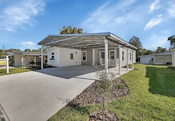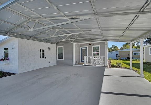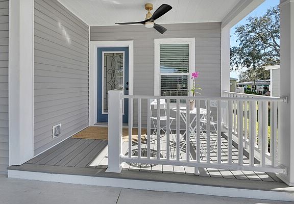 This is a cozy split plan 2 bed, 2 bath home. Guest room is to the front of the home and master bedroom is to the back for privacy. The layout of this home makes maintaining and cleaning a breeze, leaving time to join us in pickleball or bingo to list a couple of the community activities. The kitchen has all stainless steel appliances and there is space to put your washer and dryer inside with the A/C or outside in the utility room. This home is located close to the pool, clubhouse and entrance of the park for ease of access