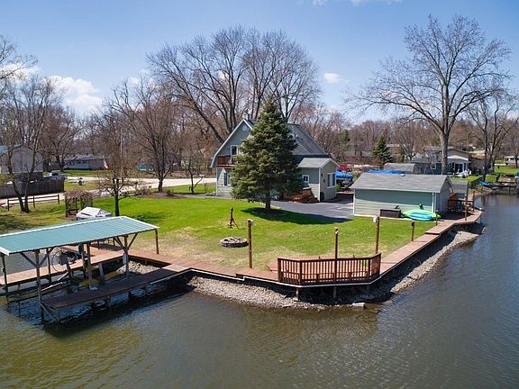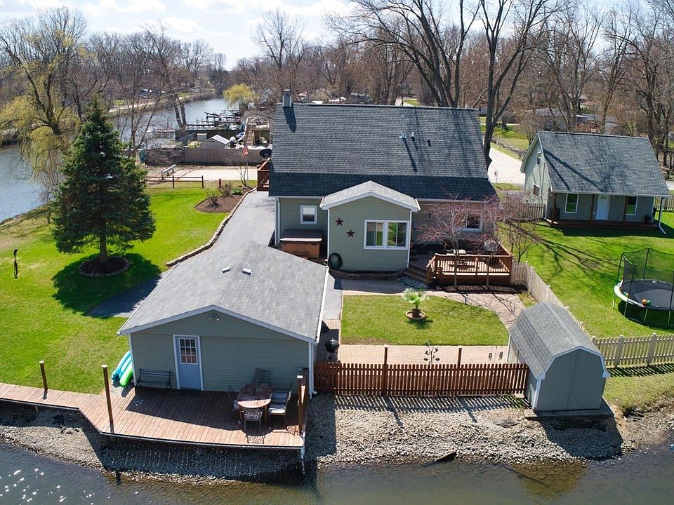 WATERFRONT rehabbed home, much larger than it looks. WE ARE ACCEPTING SHOWINGS!.. Quiet, end of street location has over 300 ft of water frontage, the deep channel is on two sides of the property... Freshly painted through out home! The home has 2 bed, 2.5 bath, gorgeous hardwood floors, and updated eat-in kitchen with stainless steel appliances and island. White doors and trim through out home. Gorgeous oak & iron railing leading to second floor family room, bar, & w/stone wood burning fireplace and spacious den. Water views out of every window. Dual furnaces and air conditioning in home. New decorative fence. Updated bathroom in past 2 years. Surround sound through out home. New light fixtures, deluxe washer and dryer, furnace & water heater. 2 garages. The 3-car garage is brand new with lots of storage. Lots of storage areas too! Hot Total property almost 1/2 block long. Hot tub and electric boat lift stay. Solar powered backup for lift station. Professionally manicured yard . LOW TAXES and flood insurance is only 1,200 a year! YOU CAN HAVE IT ALL!! View the virtual tour and come see how beautiful it is for yourself!