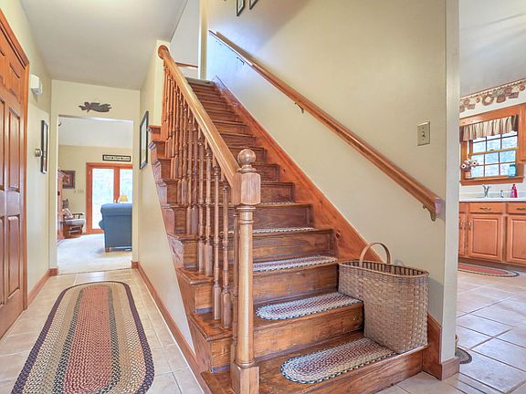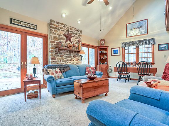 Well maintained 3 bedroom 2 bath Cape Cod features: vaulted ceilings; loft w mezzanine; ceramic floors; wrap around porch; lower-level family room; oversized 2 car garage; detached 40x24 garage; and much more. Setting on nearly 3 acres of beautiful private woods with gorgeous landscaping and wildlife right in your back yard.